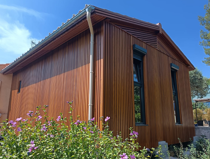 Les panneaux sont composés de 100 mm d’isolation haute densité encapsulée entre 2 plaques de bois de peuplier contrecollées/croisées de 10 mm. L’ensemble est ignifuge pour garantir la sécurité de vos proches et offre une isolation conforme à la norme RE2020.
